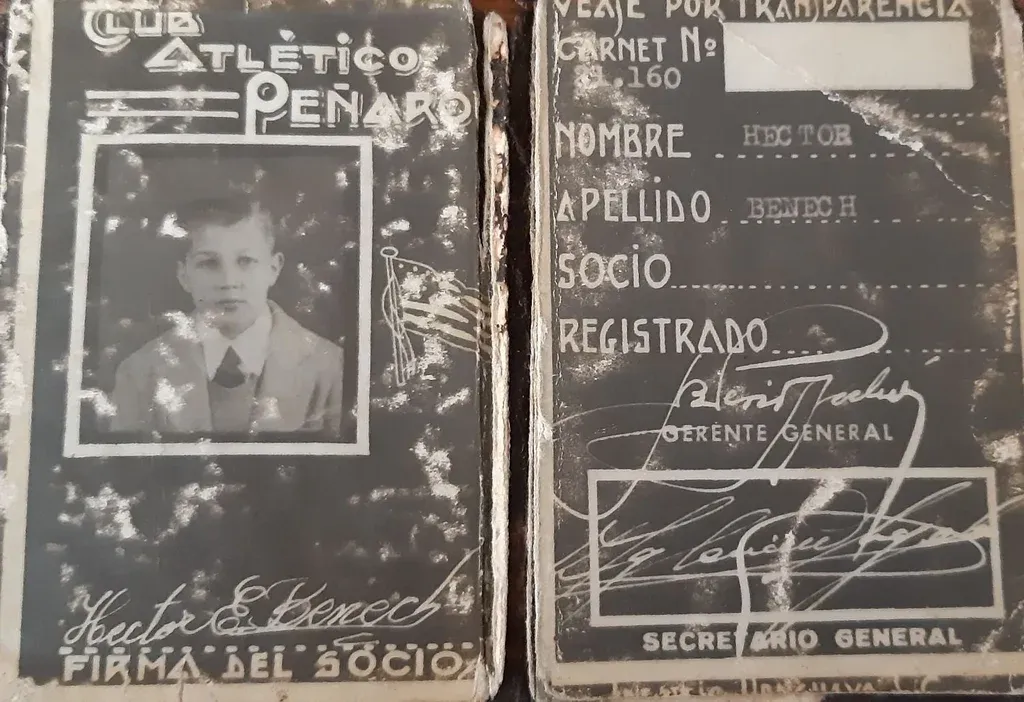 El carné de socio de Peñarol de más de 70 años de Enrique Benech