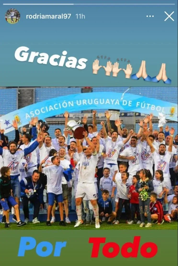 "Gracias por todo" es el mensaje que publicó Rodrigo Amaral en su Instagram junto a una foto del plantel de Nacional festejando el campeonato uruguayo número 47. Una nueva despedida sin jugar, en silencio, de uno de los futbolistas que surgió en las canteras del club con enorme potencial que nunca logró cuajar en Primera división.