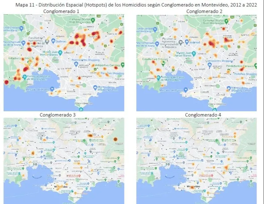 Mapas de calor elaborados y publicados en: Diagnóstico de los homicidios en Uruguay (2012-2022)