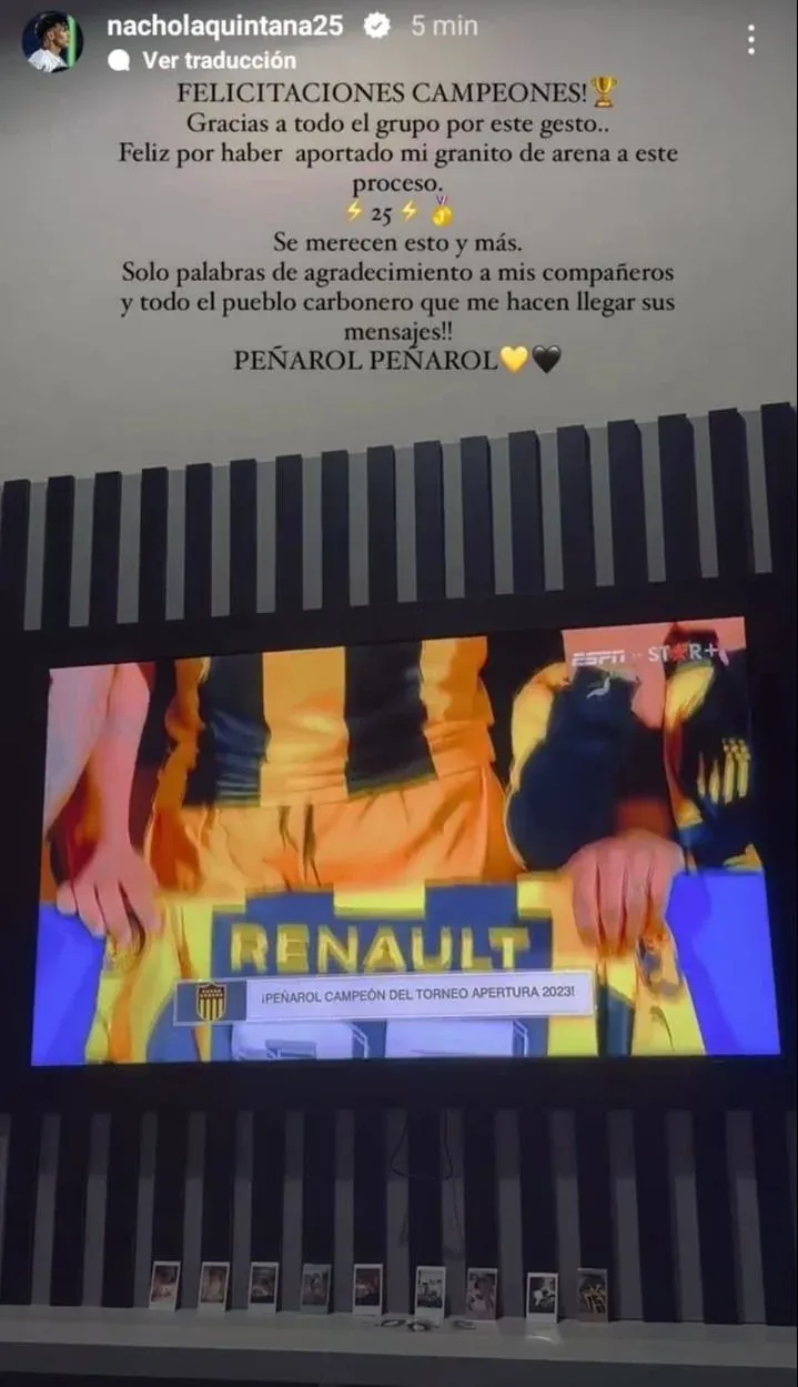 “Se merecen esto y más”, señaló Laquintana. “Solo palabras de agradecimiento a mis compañeros y todo el pueblo carbonero que me hacen llegar sus mensajes. PEÑAROL, PEÑAROL”