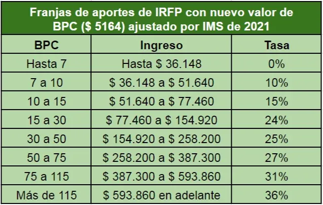Este ajuste lleva a que el mínimo no imponible del IRPF, equivalente a siete BPC, pase de $ 34.090 a $ 36.148 mensuales para este año. No obstante, ese monto no tiene en cuenta las deducciones que se calculan para el pago de ese tributo (Fonasa, aportes jubilatorios, Fondo de Reconversión Laboral, entre otros), por lo que el límite para tributar será superior según las deducciones que pueda realizar cada trabajador.