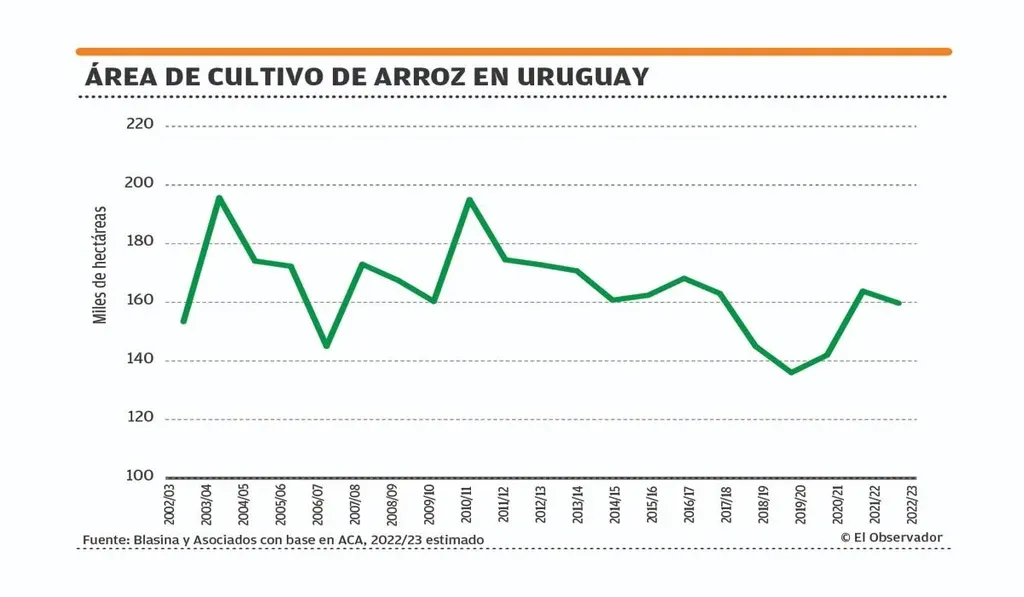 Lo que genera buen ánimo en el sector es que la siembra del ciclo 2022/23 se realizó de buen modo. Se instaló el cultivo en un área de 159,7 mil hectáreas, con una caída leve, de 3%, con relación a las 164 mil hectáreas del ciclo anterior.