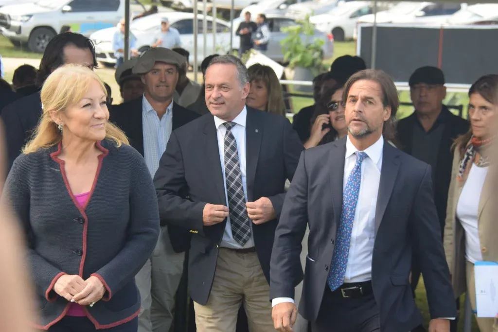 No estaba previsto ese arribo a la vez, solo coincidieron, se saludaron, ingresaron juntos y así fueron hasta el sitio en el que se realizó el acto inaugural, acompañados de varias autoridades, entre ellas Álvaro Delgado, secretario de Presidencia de la República, y Nicolás Chiesa, director de la Granja en el Ministerio de Ganadería, Agricultura y Pesca.