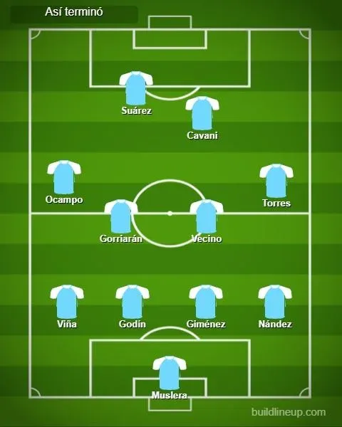 Unos minutos después, siempre manteniendo la forma táctica, ingresaron Matías Vecino y Brian Ocampo que tuvo su debut absoluto con la celeste, en lugar de Torreira y De La Cruz. Y luego Facundo Torres por Giovanni González, pasando Nández a marcar el lateral.