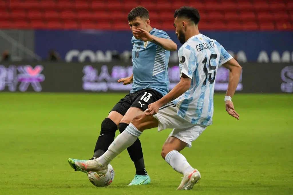 Uruguay se preocupó más por contener a los jugadores argentinos, por tratar de que Messi no pudiera encarar con la pelota dominada, que por profundizar el juego. Es más, la primera vez que remató al arco fue a los 42 minutos, un disparo de Bentancur desde afuera del área después de un tiro libre que ejecutó De La Cruz desde la izquierda.