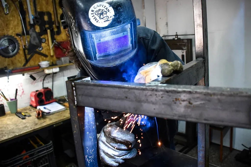 Timbre. El metal calla, un par de pasos aplastando el pedregullo, un chirrido. Se abre la puerta y Merino –34 años, melena rizada y oscura hasta los hombros, nariz aguileña, brazos fuertes, barba recortada– invita a pasar a su refugio. Es un patio amplio con una casa bajita al fondo y un pórtico de chapa rodeado de tanto mobiliario metálico, herramientas y maquinaria que es difícil establecer el límite de dónde termina uno y empieza el otro.