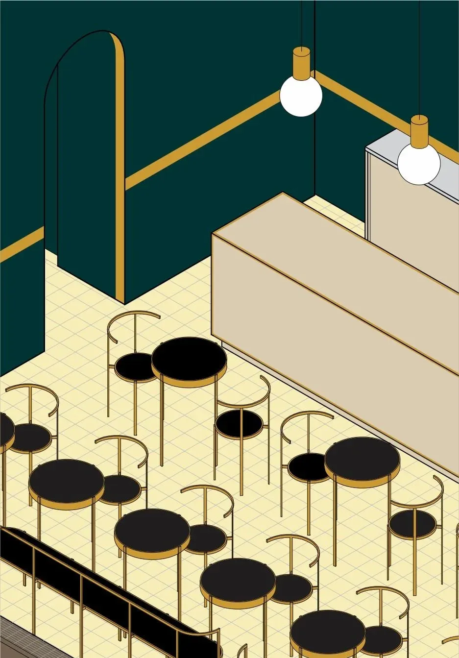 Antes que nada me gusta observar el entorno y la cotidianeidad de los locales que voy a hacer. Por ejemplo, para Culto me puse a investigar lo que había en la vuelta de Ciudad Vieja que me podía dar algo. Encontré una iglesia acá a la vuelta que tiene una cripta con arcos dorados, luces tenues y paredes escritas. Todo eso fue una gran influencia para ese local. Pero lo primero que me viene a la mente es la espacialidad del lugar. Con los locales vos creás una escenografía, un espacio donde le hacés creer a la gente que por un rato está en una nueva realidad. Entonces trato de imaginarme qué historia puedo contar ahí. Es un diálogo porque el mobiliario –que te da una escala más humana y condensa las ideas– le da una base a la arquitectura y refuerza algunas intenciones. Y la arquitectura es la que genera ese efecto envolvente.
