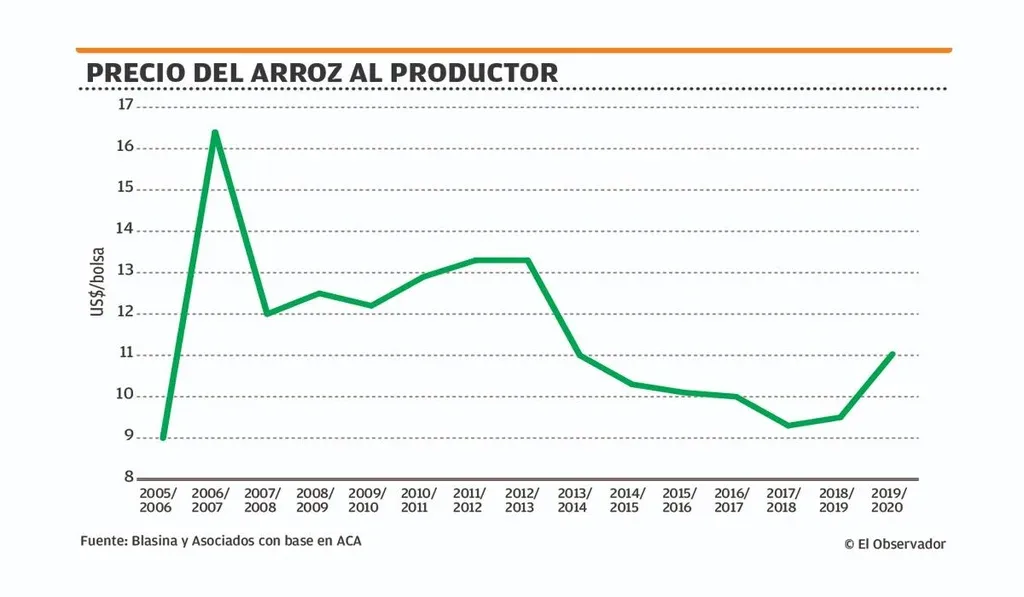 Esa relación ha ido cambiando desde una que fue en un momento asimétrica en precios, con una renta arrocera que desde la década de los años 90 se ubica de nueve a 10 bolsas, de modo que el dueño del campo recibía US$ 80 y la renta ganadera era de aproximadamente US$ 15. Ese era el poder del arroz que le permitía conseguir campos. Esa relación en el presente es de US$ 100 contra US$ 70 a US$ 80 de la renta ganadera y eso hace más difícil conseguir campos para arroz en tiempos oportunos. El ganadero tiene menos incentivos para cederlo antes.