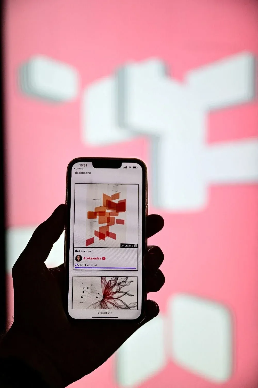 Para esta edición, los organizadores de la feria se han aliado a la plataforma de "blockchain" Tezos, que presenta obras digitales de artistas de las que, gracias al aprendizaje automático de las máquinas, se generan nuevas versiones en forma de NFT.