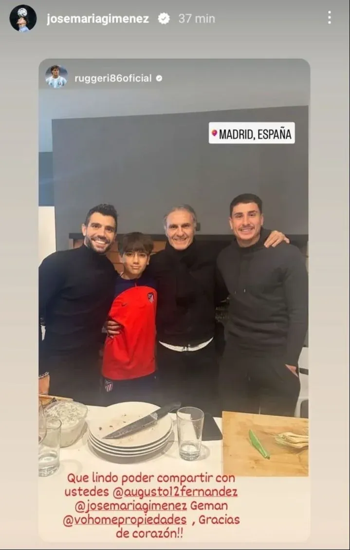 El zaguero uruguayo de Atlético de Madrid, José María Giménez, compartió en la capital española un momento con un campeón del mundo con la selección argentina y uno de los jugadores más laureados de la historia del fútbol.