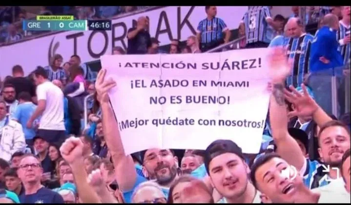 “¡Atención Suárez! ¡El asado en Miami no es bueno! ¡Mejor quedate con nosotros!”, le escribieron al delantero, intentando convencerlo con el corte cárnico que también se come en Porto Alegre.