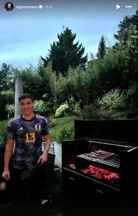Para hacerse cargo de la parrilla se puso una camiseta de Japón, la 13 de Morita, la que mostró en sus redes.