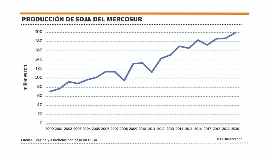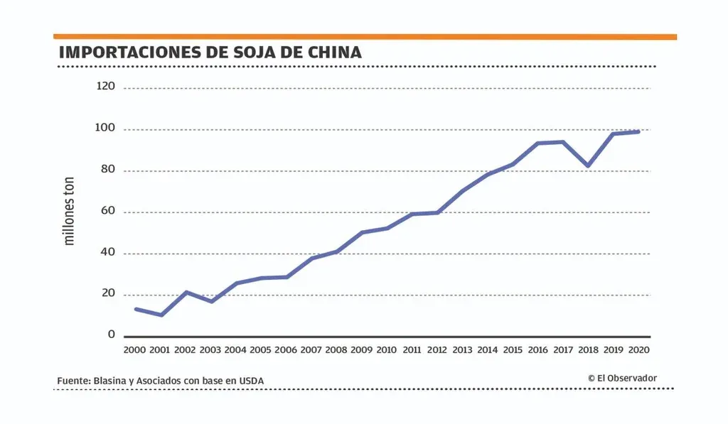 - 99 millones de toneladas es el probable récord que habrá en las compras que haga China –el principal demandante de soja del mundo–; en 2019/2020 importó 98 millones de toneladas de la oleaginosa.