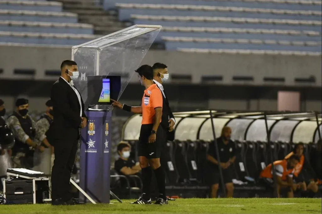 Nacional llegó al 2-0 con un gol de Bergessio luego de un penal marcado por el VAR, chequeado en la pantalla a nivel de campo de juego, la que es custodiada por dos efectivos de seguridad. Nuevamente, los presentes, no tenían ni idea qué era lo que se estaba observando.