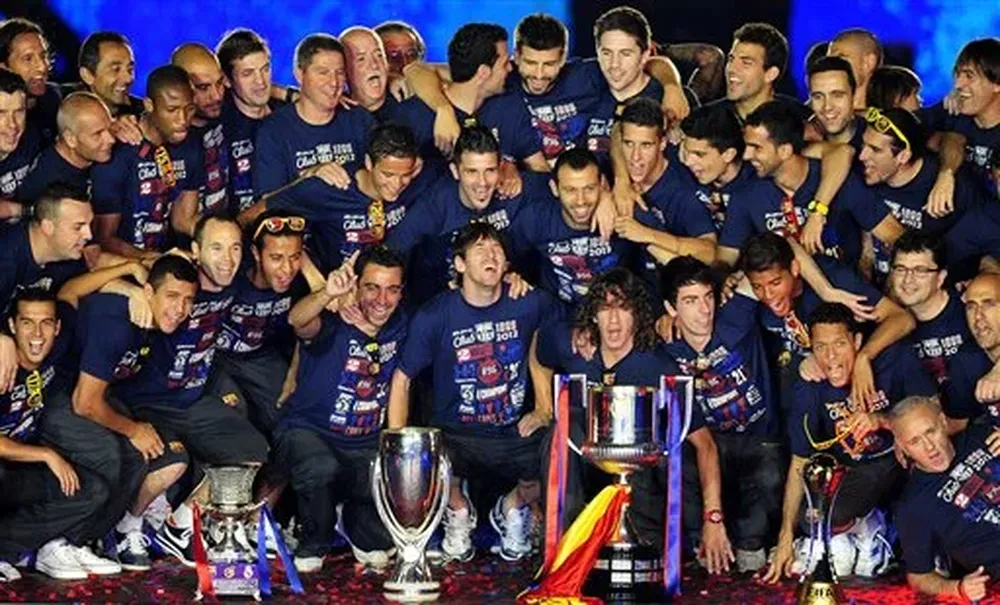El pequeño homenaje ha concluido con un castillo de fuegos artificiales y una foto de familia enfundados todos ellos en una camiseta conmemorativa, y junto a las cuatro copas de ha obtenido el Barcelona esta temporada: Supercopas de España y Europa, Mundial de clubes y Copa del Rey.