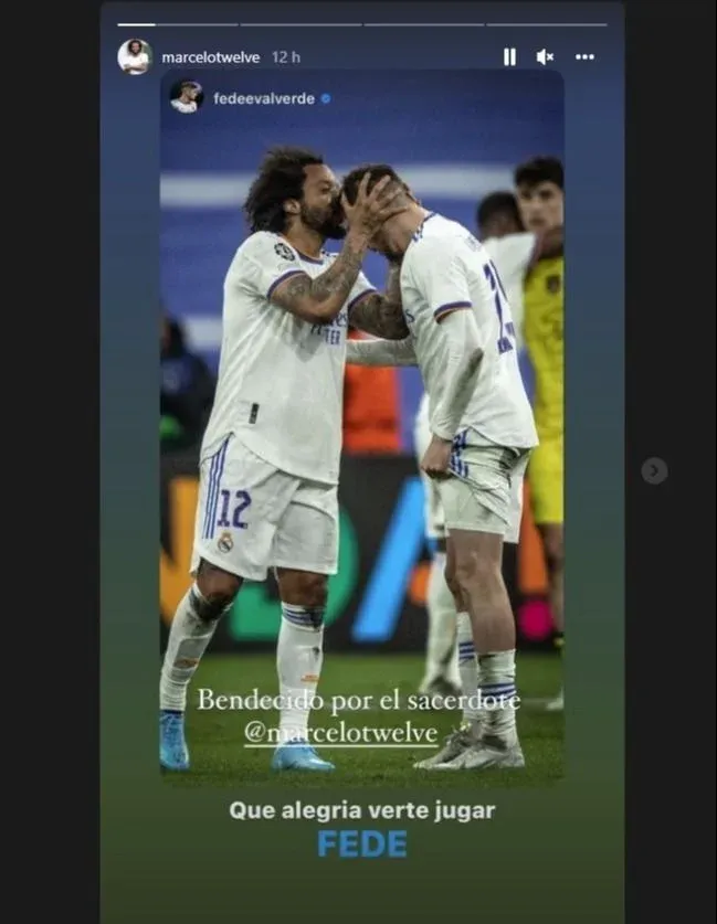 El mensaje de Marcelo fue una réplica a una foto que subió el uruguayo en la que se lo ve besando a Valverde en su frente.