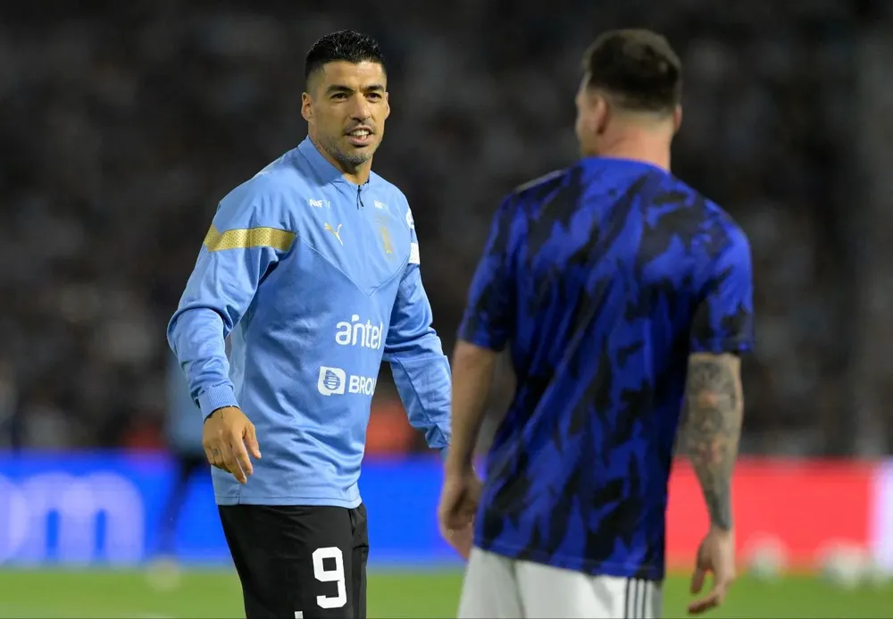 Además, se sumó al saludo Rodrigo de Paul, quien abrazó al uruguayo e intentó simular acercarse para dar un beso en la boca, a lo que Suárez tomó distancia del argentino.