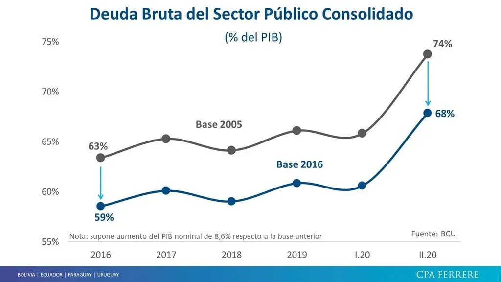 Varios economistas privados han manejado que en la base del año 2005 existe una sobreestimación del sector telecomunicaciones en particular. Por ejemplo, un ejercicio teórico sacando esta rama arroja que la economía uruguaya no creció a una tasa de poco más del 1% entre 2015 y 2019, sino que se mantuvo estancada.