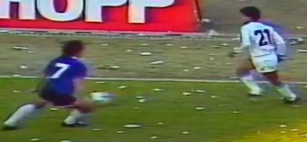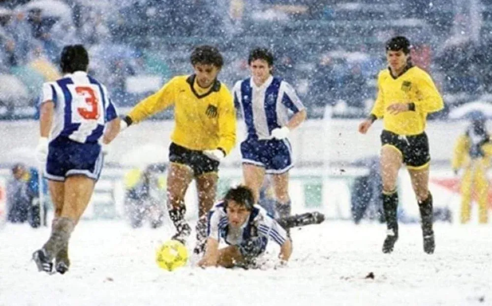 Eduardo Da Silva hace lo que puede en medio de la nieve de Tokio en el partido contra Porto por la final de la Copa Intercontinental de 1987