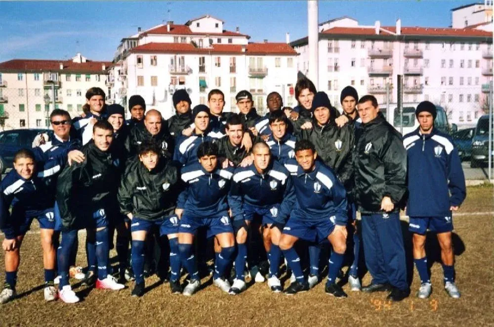 Domingo Cáceres aparece con el grupo de Juventud de Las Piedras en Viareggio, Italia, cuando ganaron el Mundial jugado allí