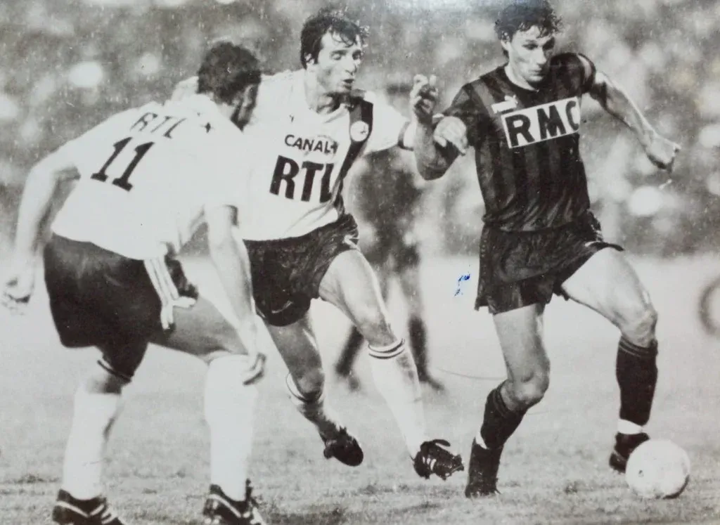 El uruguayo Wilmar Cabrera con la camiseta de Niza ante Paris Sasint-Germain en la temporada 1986-87