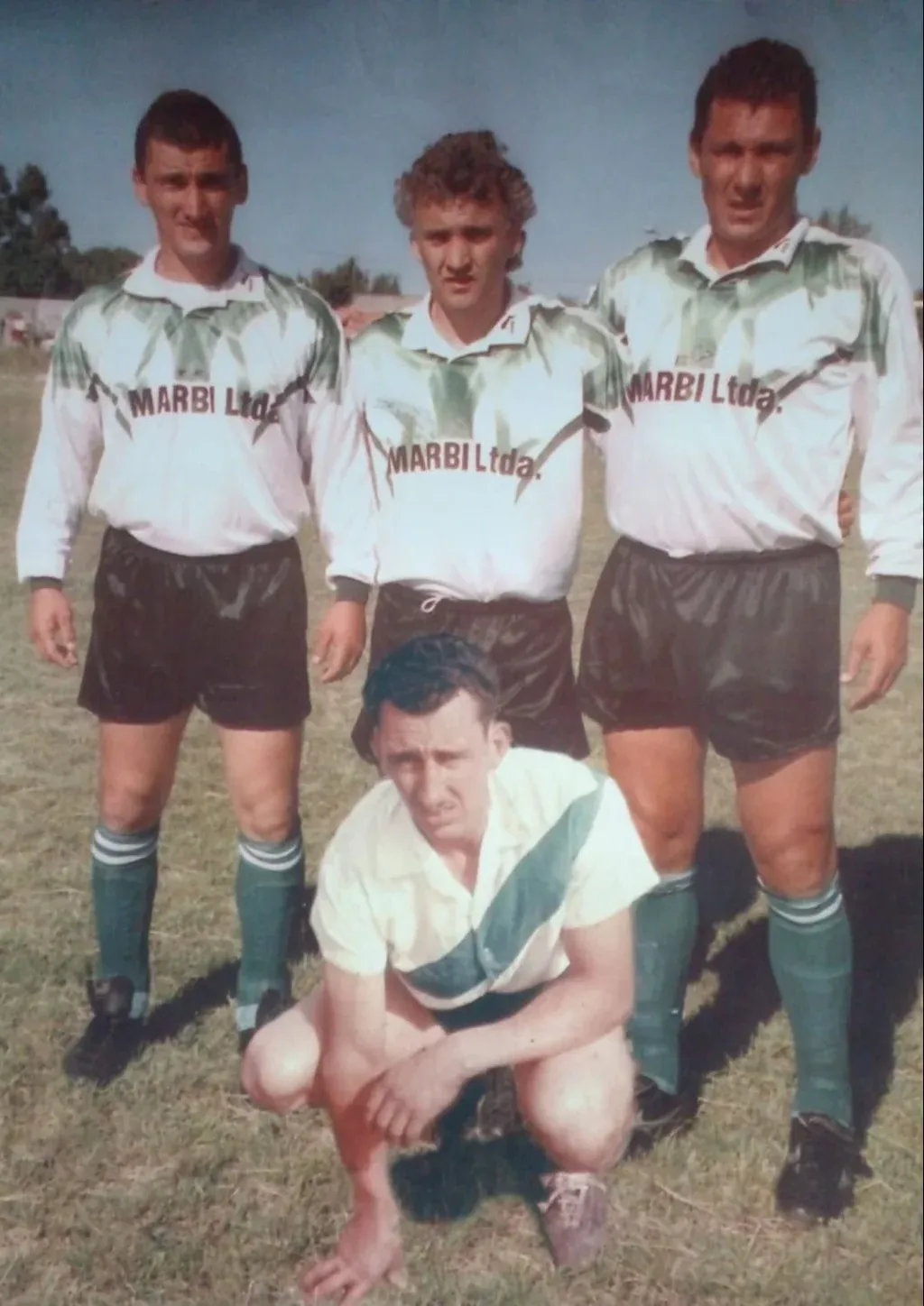 Wilmar Cabrera junto a sus hermanos, Robert y Willian, este último, ya fallecido jugaron juntos en Cerrillos; con ellos, en la foto montada, aparece su papá Rubens con la camiseta que lució ese club por primera vez