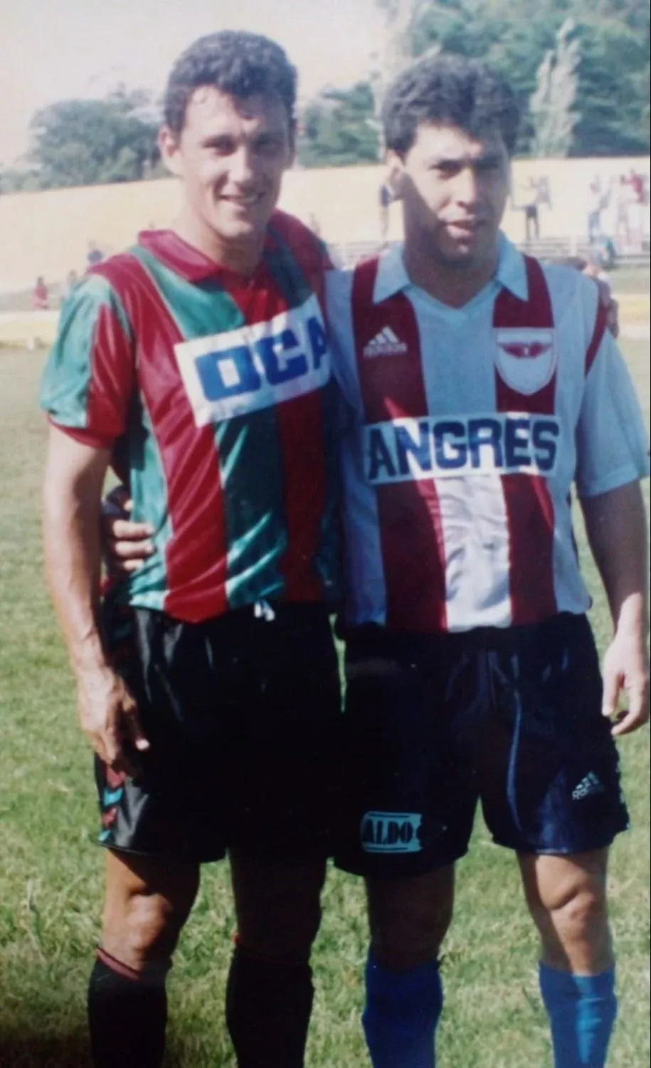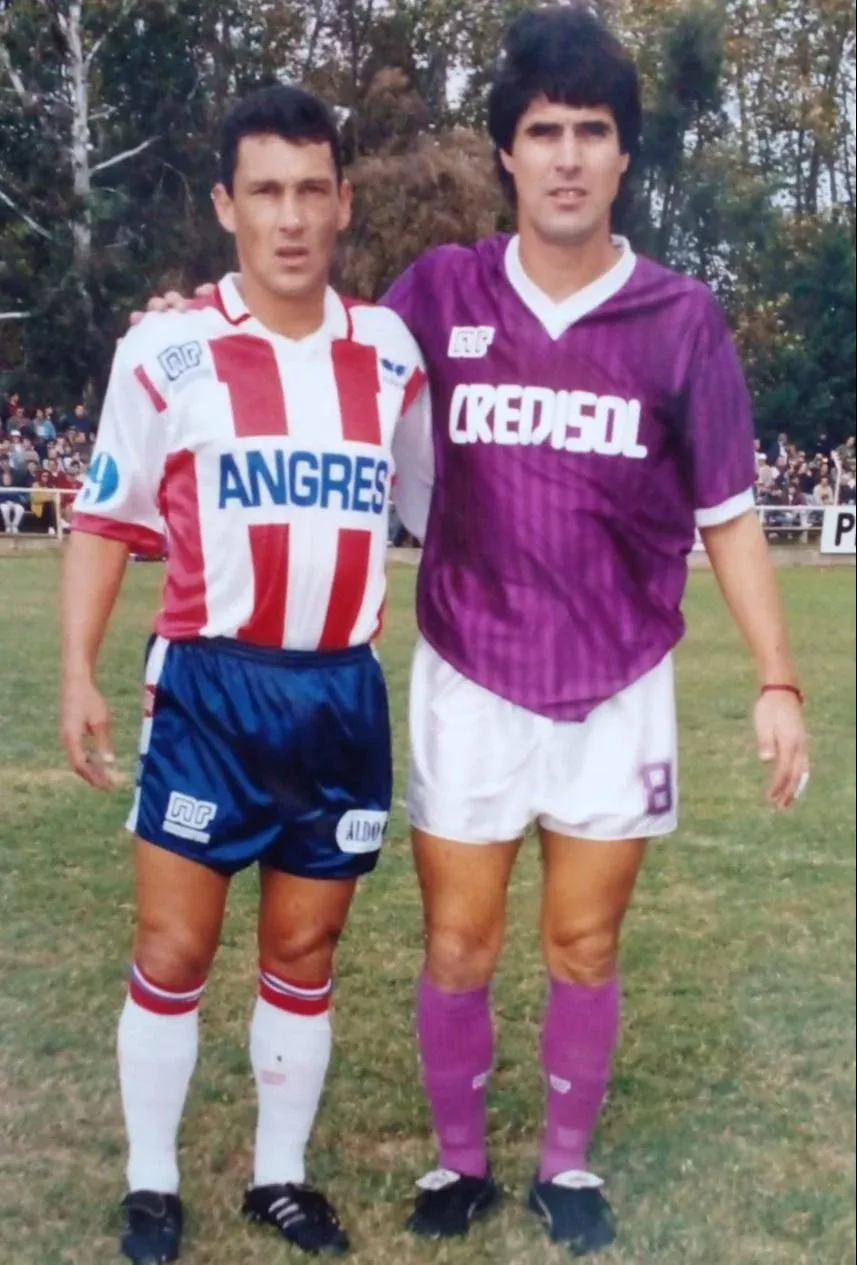 Luis "Loco" Acosta junto a Wilmar Cabrera cuando jugaron en Huracán Buceo; ya habían sido compañeros de la selección campeona de América en 1983
