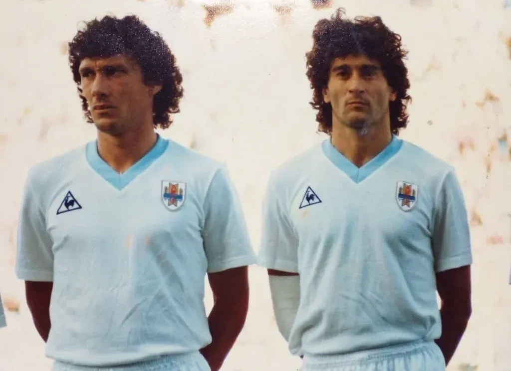 Wilmar Cabrera junto a Darío Pereyra con la camiseta de la selección uruguaya, antes de enfrentar a Argentina en el Mundial de México 86