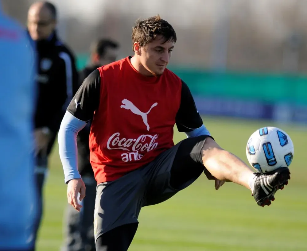 El delantero de la celeste llegó a la conferencia con el amargo pero le dio vergüenza tomar delante de la prensa y conservó el orden metiendo el amargo debajo de la mesa
