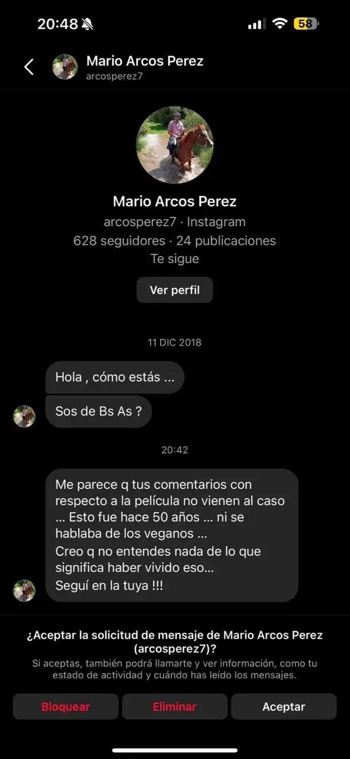 Este sábado, al otro día de su comentario, Bonino mostró un comentario que recibió en Instagram del uruguayo Mario Arcos Pérez, quien no solo la criticó sino que le pasó factura por no haberle contestado un mensaje de 2018.