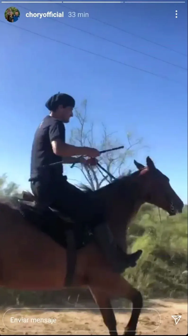 Además, luego compartió videos en los que iba al galope, con la fusta bajo el brazo, al costado de un camino de tierra.