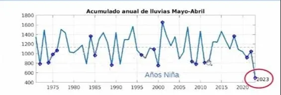 La falta de lluvias en 2023 estuvo muy por encima de los otros años secos