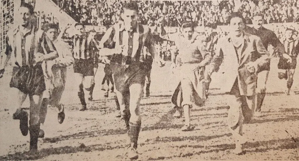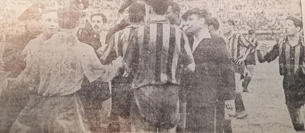 Pero la fricción clásica no es de ahora. Existe desde los albores del fútbol uruguayo. Llegó el primer gol a cargo de Ghiggia y luego llegó un penal de Eusebio Tejera sobre Míguez. Si bien hay recortes de la época que señalan que fue José Emilio Santamaría el de la falta, el propio Tejera fue quien admitió que la hizo. Allí, el zaguero se le fue encima al árbitro, quien lo expulsó. El penal lo pateó Míguez y el gran Aníbal Paz lo atajó, pero en el rebote, el Patrullero Vidal puso el 2-0. Nacional protestó porque el delantero aurinegro se adelantó en el remate y allí Walter Gómez le pegó un puntapié al árbitro quien reaccionó con un puñetazo. Consecuencia: otra expulsión..
