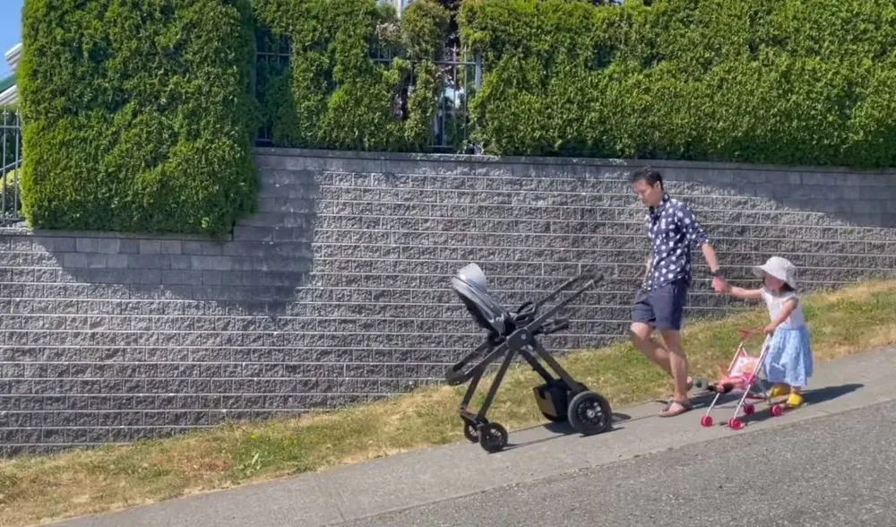 La asistencia eléctrica permite subir cuestas sin sudar y los frenos se activan automáticamente "para que nunca haya la posibilidad de que el cochecito se descontrole", explicó To.
