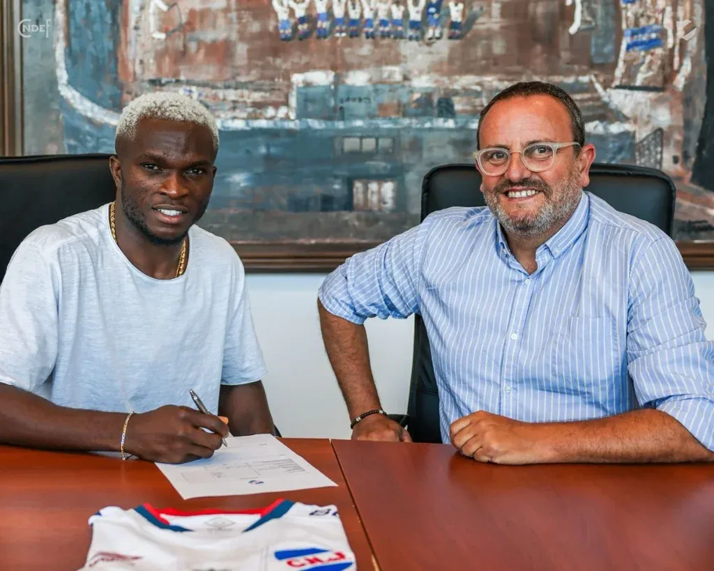 Por la tarde, Ebere fue a las oficinas del club en el Gran Parque Central y puso la firma de su contrato, esta vez luciendo una remera blanca más tradicional.