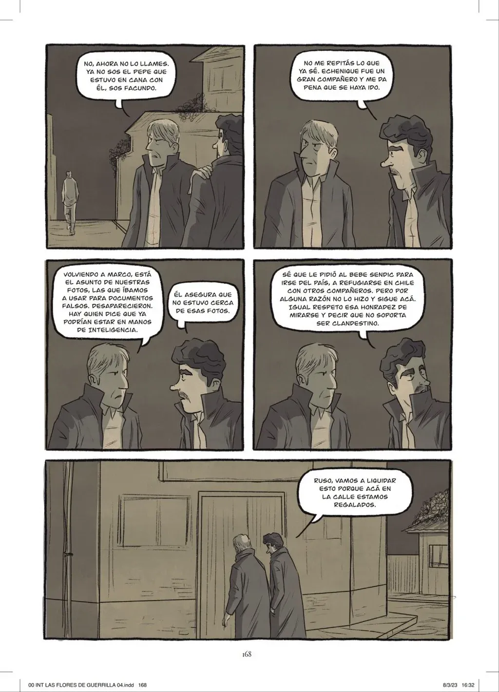 “En total el proyecto tuvo tres versiones, con cambios totales de argumento y de encare. Con Leo hicimos las dos últimas, a lo largo de un proceso de escritura e investigación que luego llevó dos años de dibujo. Grivel llevó el material a la feria del libro de Fráncfort, donde fue adquirido por una editorial francesa, la primera que lo publica en 2022”, explicó Castro a El Observador.