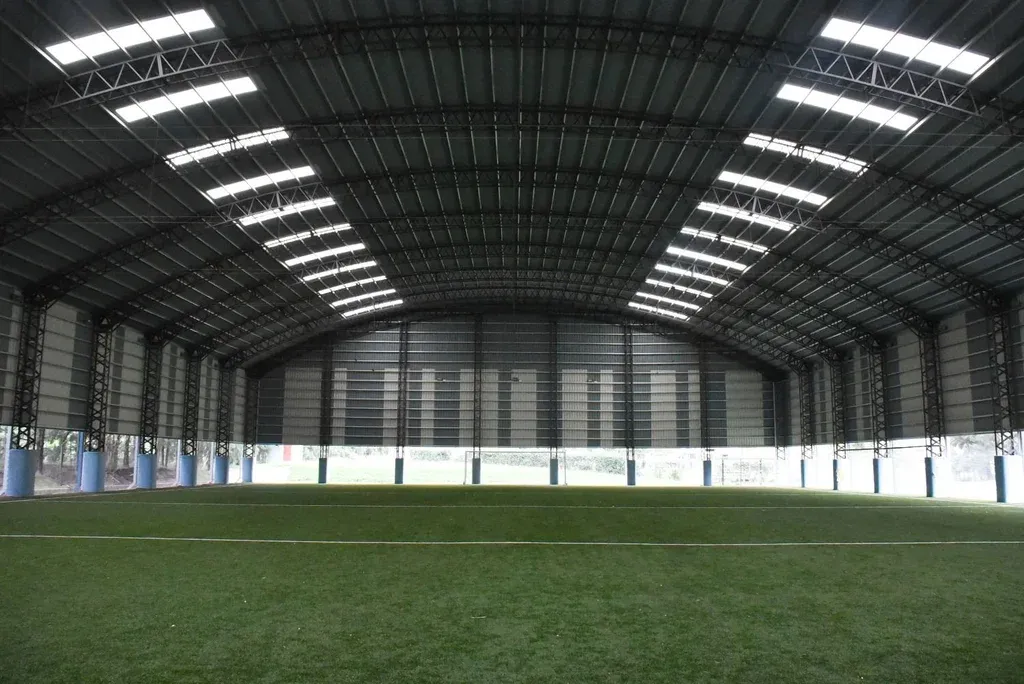 El complejo tiene 10 hectáreas. En el predio hay una cancha de césped sintético y cuatro de césped natural (todas con medidas reglamentarias), una cancha techada de 60 metros x 40 m de sintético y una cancha de césped natural de 20 m x 30 m, que tiene un perímetro de madera y que en general utilizan para realizar trabajos específicos con los goleros. En la planta física principal: sala administrativa, sala de prensa, comedor (de cerca de 180 m2 con comedor, living y cocina incorporada, con su despensa y cámara de frío), sala de recreación con pool y mesa de tenis de mesa, biblioteca con casi 1.000 libros, parrillero cerrado, sala de musculación, vestuarios y utilería. Además, 20 habitaciones con dos camas de plaza y media, baño privado, TV, placar y aire acondicionado. Sala para el cuerpo técnico. En la recorrida virtual, Pagani explica que en la parte exterior del sector principal hay un fogón que hicimos hace un año y medio y que se utiliza como punto de encuentro.