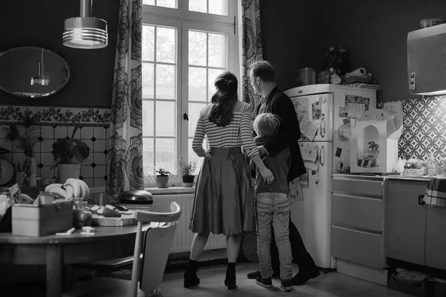 El cumple es una película realizada en Alemania por un director uruguayo, pero tiene un claro componente atemporal (es difícil darse cuenta de la época en la que transcurre hasta que Matthias saca un celular moderno), y aunque los personajes hablan alemán, podría trasncurrir en cualquier parte del mundo. “Esa fue la estrategia”, confirma el director. “Capaz que eso también viene por lo autobiográfico, llevo muchos años fuera de mi mundo, de mi universo, que es Uruguay, y capaz que en vez de desarrollar mis historias en un contexto conocido tuve que empezar a construir universos únicos en donde poder desarrollarlas. Pero no solamente lo retrata el blanco y negro, sino también los autos, la ropa, las locaciones, la actuación, los movimientos de cámara. Es una película que en su puesta en escena es antigua, que tiene que ver con Billy Wilder y las referencias del cine de los años 40 y 50. Hay una sensación de extrañeza. Los lentes de la cámara, los empapelados de las paredes, todo eso fue buscado para generar un universo único atemporal y aespacial que contenga una historia que pueda ser entendida universalmente”.