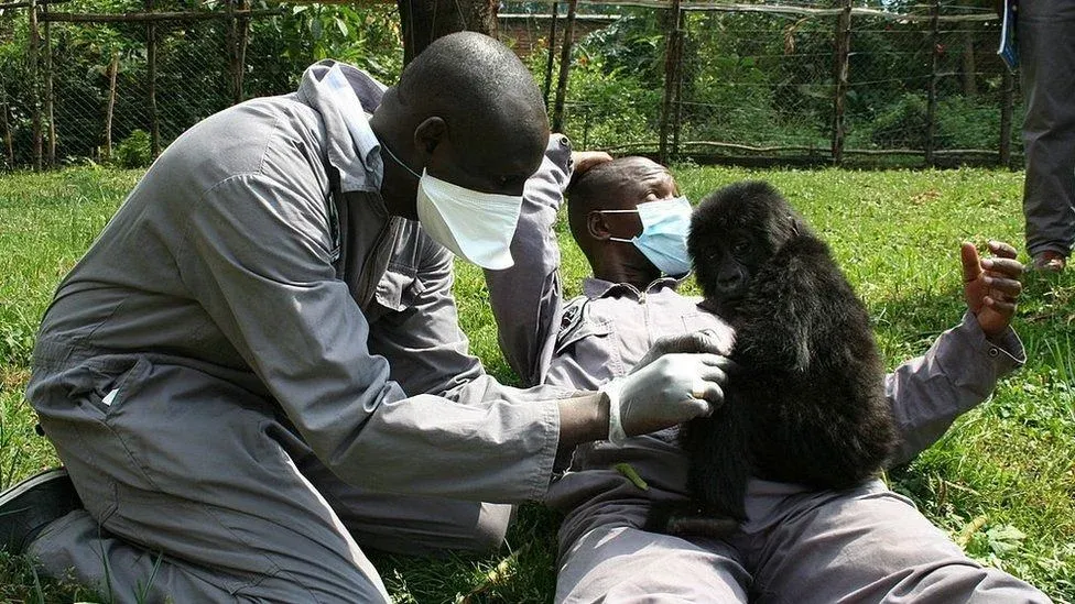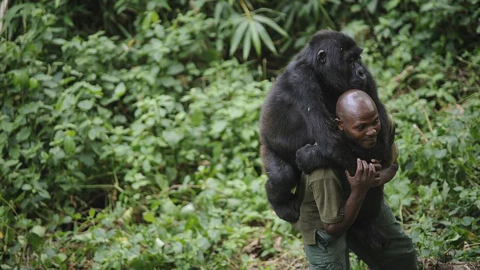 "Esa foto se tomó en las instalaciones del orfanato de gorilas de montaña".