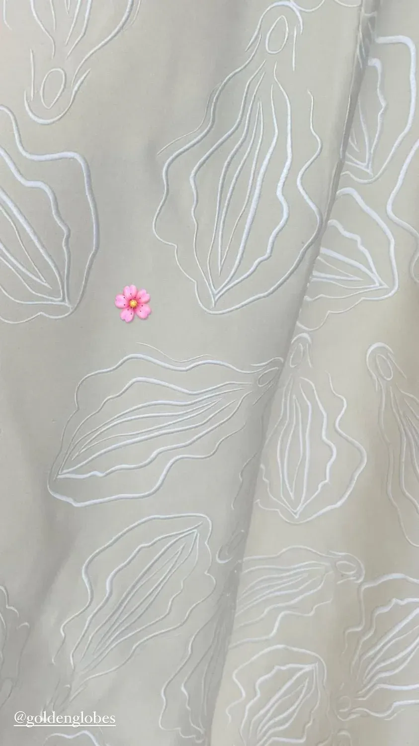 La actriz subió luego a su cuenta de Instagram una imagen con un detalle del diseño, junto al emoji de una flor. Según la revista People, cada uno de los bordados fue hecho a mano, y llevó tres horas y media de trabajo por cada uno.