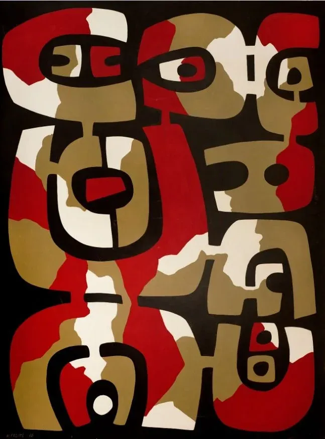 Composición 17 de julio de María Freire. Acrílico en tela. Alto: 180 Ancho: 136 cm