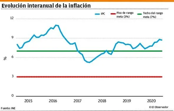 Y la inflación en 8,71% se mantiene por encima del rango meta (de entre 3% y 7%). En 2020 no se espera una caída significativa de los precios.