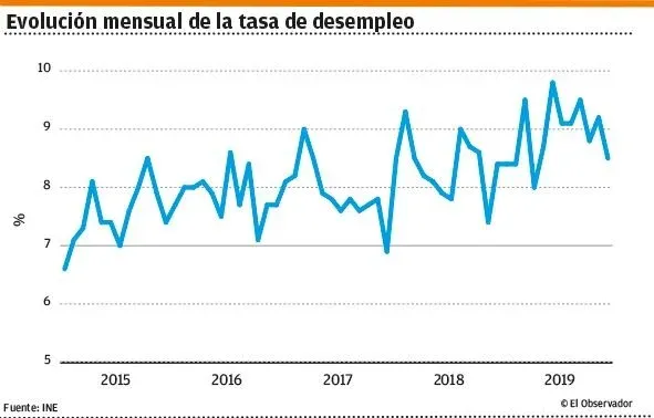 El deterioro del mercado laboral continuó en 2019 y se completaron cinco años consecutivos de pérdida de puestos de trabajo. El ritmo de caída se hizo más pronunciado que el año anterior y se alcanzó la peor situación en materia de empleo y desocupación de los últimos 12 años, sin señales a la vista de una mejora de esos indicadores. La desocupación afectó a 8,9% de la población económicamente activa.