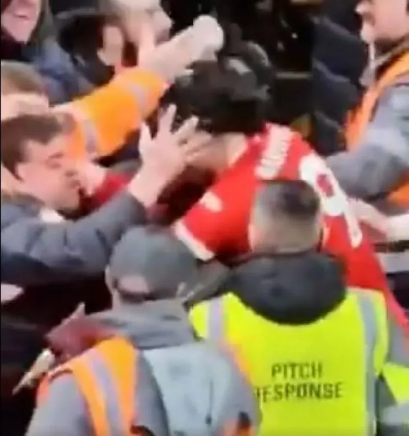 En pleno festejo, el uruguayo Darwin Núñez no solo se tiró arriba de Mac Allister, sino que luego, le agarró la cara a un hincha que estaba en la tribuna.