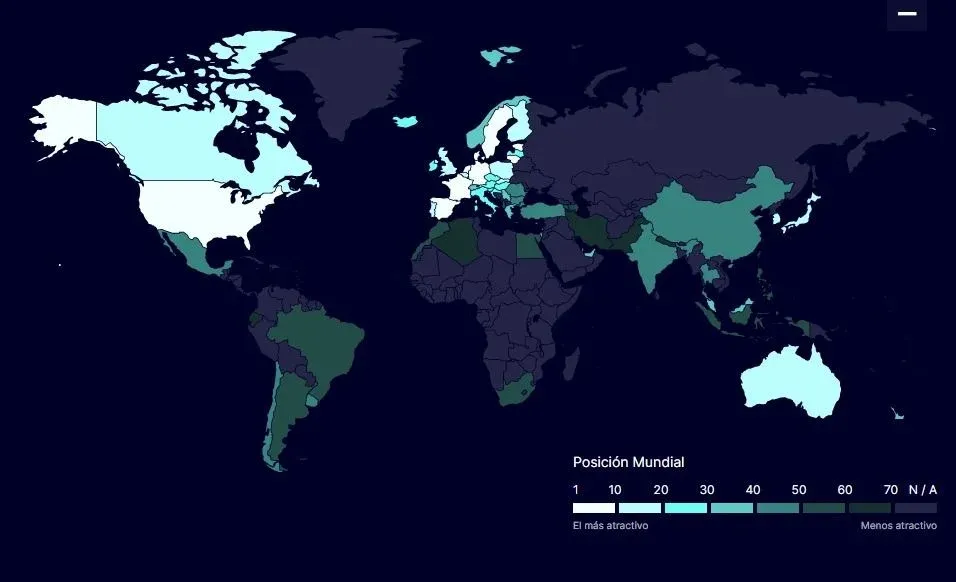 Mapa según cuán atractivo son los países para teletrabajar.