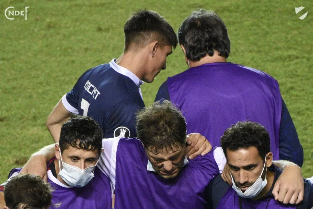 El penal de Martínez desató la locura de los tricolores dentro y fuera de la cancha. Los futbolistas que no fueron convocados siguieron la tanda desde la platea, abrazados como si estuvieran en el medio de la cancha, y con Thiago Vecino con una estampita de San Cono en sus manos.