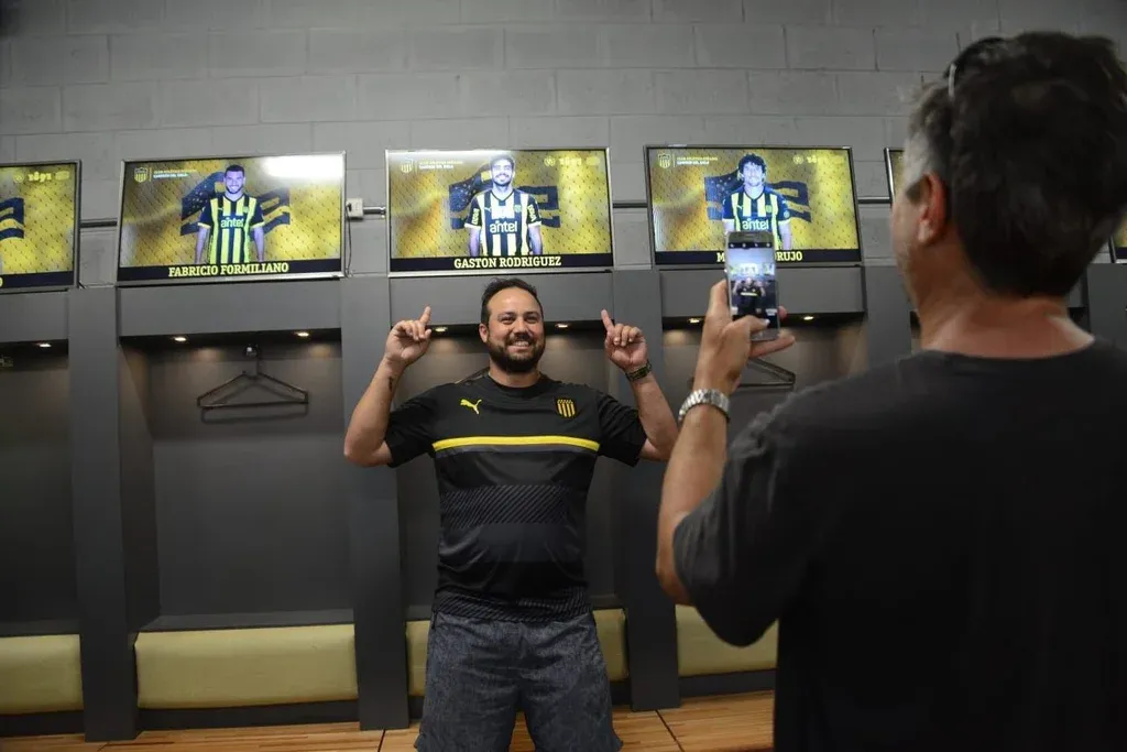 Diego Battiste Tanto los hinchas como los socios pudieron ingresar al vestuario en el que normalmente se cambia el plantel de Peñarol para ingresar a cada partido y allí se tomaron fotos, selfies e incluso filmaron el momento.