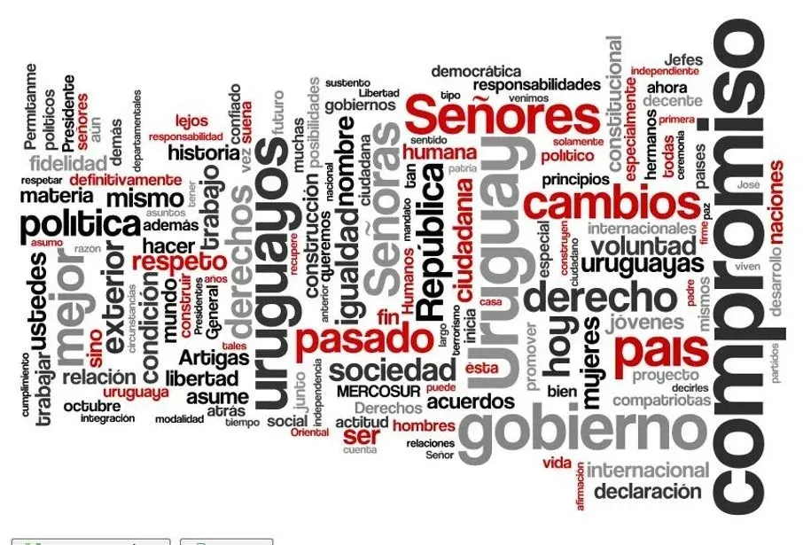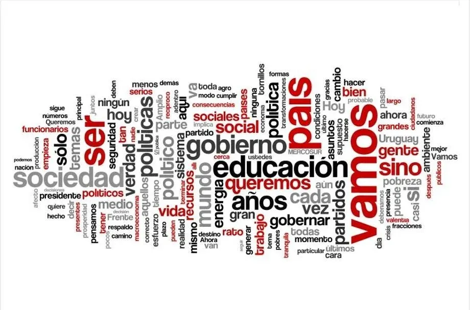 Nube de palabras del discurso de José Mujica en 2010 Pero más allá de cuánto habló cada uno (un dato no menor porque traduce en buena parte la personalidad de cada mandatario), está el foco central de su discurso y lo que más quedó grabado en la opinión pública, dimensiones que no siempre coinciden. ¿Recuerdan el “Educación, educación, educación” de Mujica? ¿Qué más recuerdan de su discurso? Seguramente no mucho más, aunque dijo mucho más con términos profusamente repetidos como “vamos” o “queremos” y “gente”.