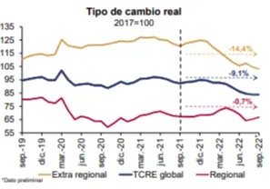 De acuerdo con el último Informe de Política Monetaria (IPOM) del tercer trimestre, el tipo de cambio real efectivo (TCRE) cerró el período julio-setiembre con una caída de 5,6% frente el trimestre previo, mientras que en el último año cayó 9%.