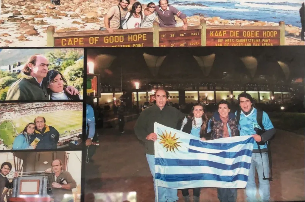 Eduardo De la Peña junto a sus tres hijos, Diego, Marcela y Martina en el Mundial de Sudáfrica 2010, cuando acompañaron a la selección uruguaya